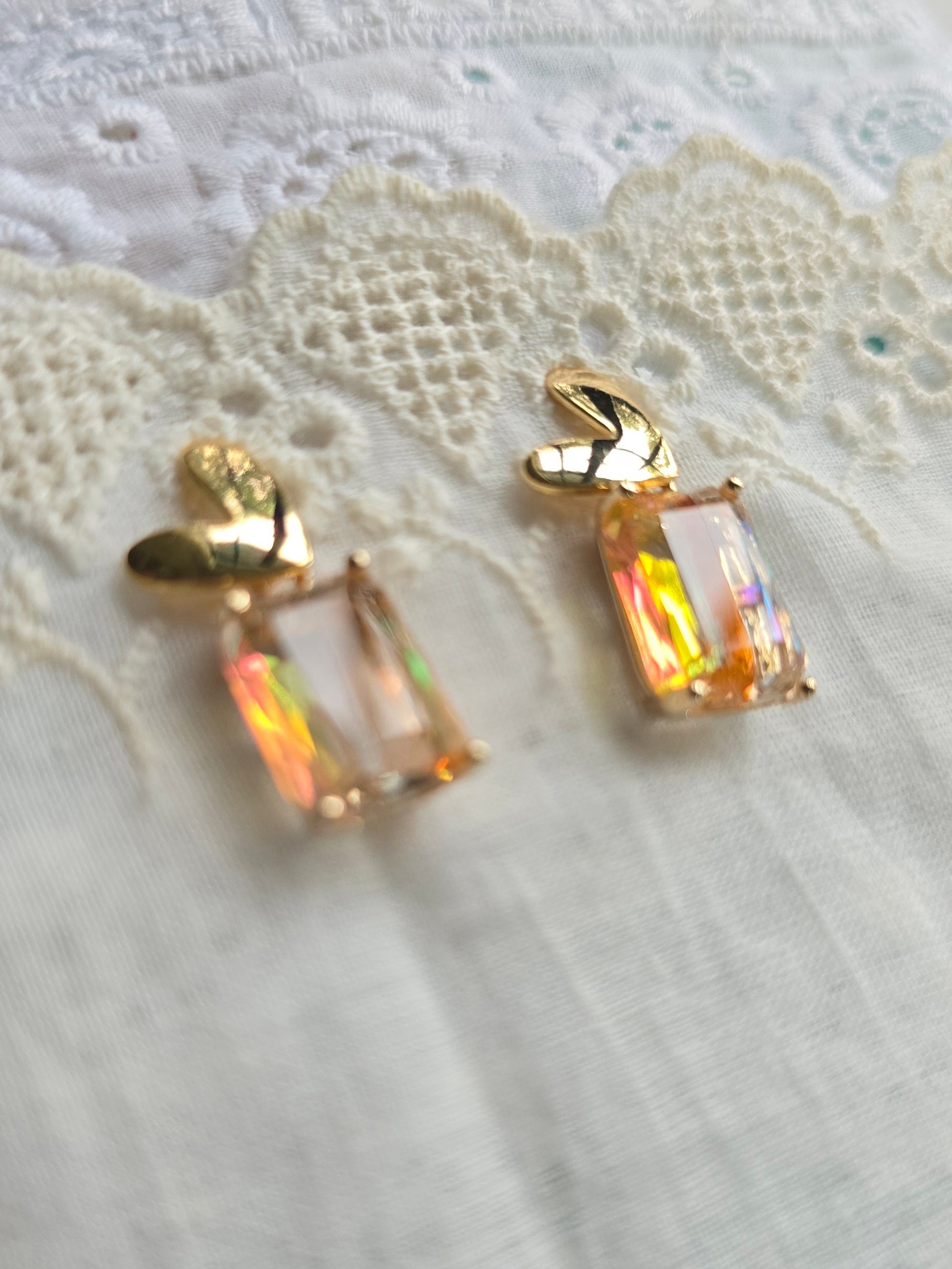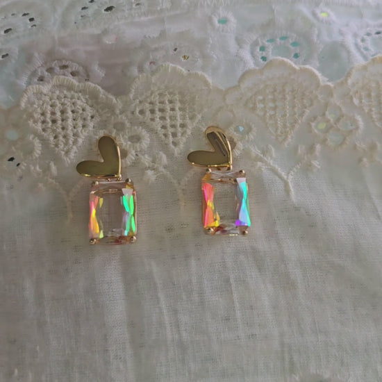 Heart Drops: Aurora's Kiss luxe faceted glass stud earrings in fiery yellow